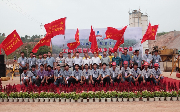 9月2日,廣西路橋建設(shè)有限公司在六欽1標(biāo)舉辦工程測量崗位創(chuàng)先爭優(yōu)技能比賽。廣西交通工會、海員工會主席黎建華,自治區(qū)交通運輸廳直屬機關(guān)黨委專職副書記羅華芝,集團,公司黨委副書記張友坐等領(lǐng)導(dǎo)出席比賽開幕儀式并講話。