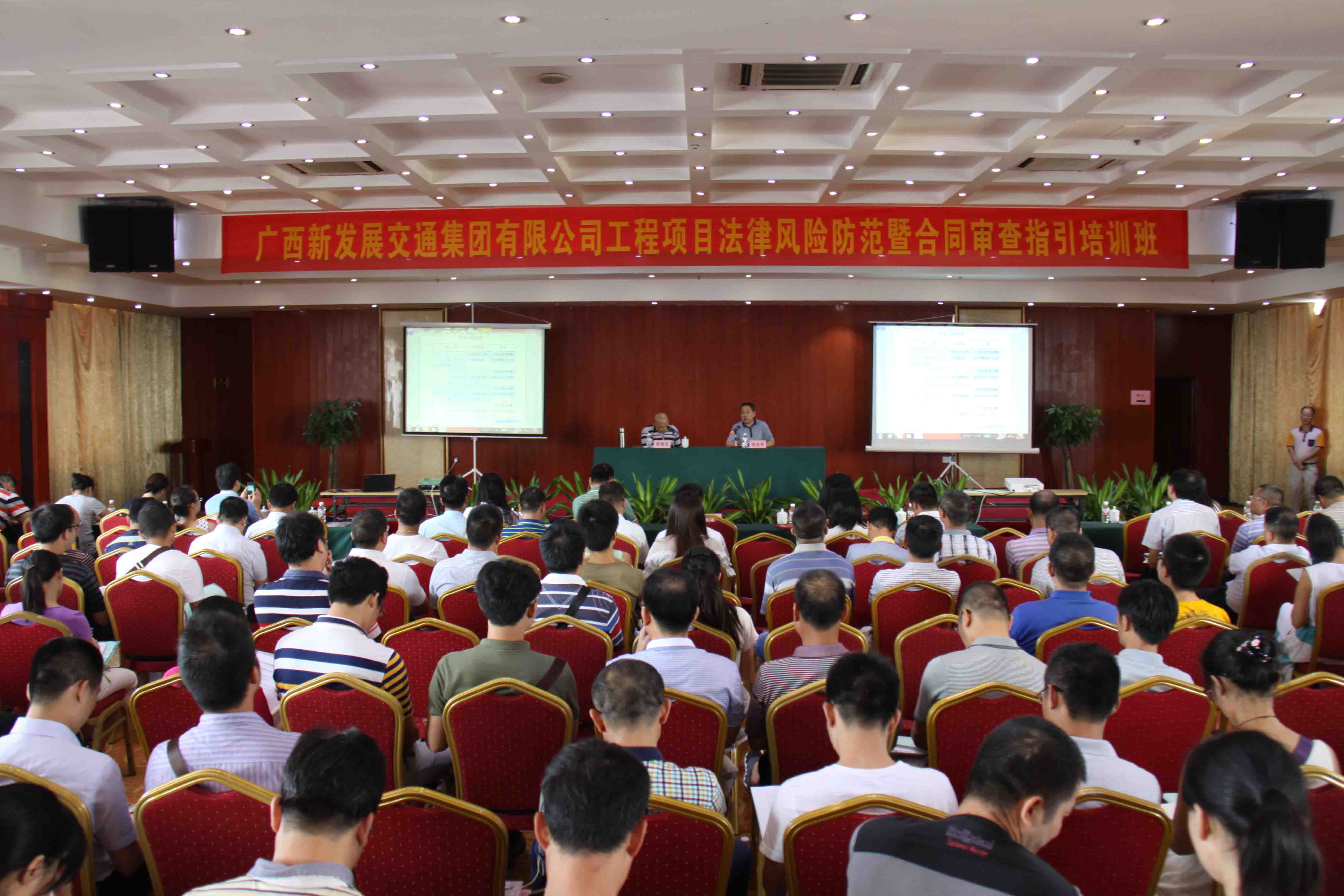本次培訓(xùn)班邀請(qǐng)了廣西同望律師事務(wù)所黃強(qiáng)光主任和林籽光律師分別就工程項(xiàng)目法律風(fēng)險(xiǎn)防范及集團(tuán)公司《合同審查指引》進(jìn)行專題講解。
