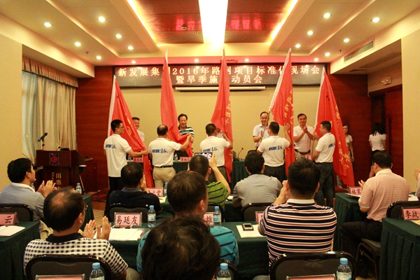 會(huì)上,集團(tuán)領(lǐng)導(dǎo)還給“旱季施工青年突擊隊(duì)”授旗,各參建單位代表作了旱季施工表態(tài)發(fā)言。