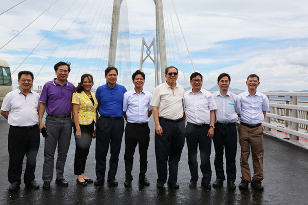 近日,廣西新發(fā)展交通集團黨委書記、董事長朱堅和陪同自治區(qū)人民政府副主席陳剛視察港珠澳大橋工程項目。陳剛副主席對港珠澳大橋工程項目施工質(zhì)量表示稱贊。