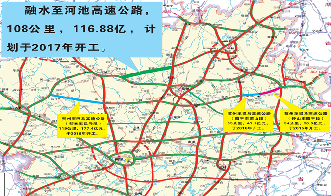 融水至河池高速公路是自治區(qū)重點推進的縣縣通高速公路項目之一,是廣西高速公路路網(wǎng)規(guī)劃中“橫2支線”——桂林至河池高速公路的重要構成路段。項目起于柳州市融安縣潭頭鄉(xiāng)紅嶺村附近,與擬建的桂林至柳城高速公路連接,并與三江至柳州高速公路相交,終于宜州市德勝鎮(zhèn)全村附近,與宜州至河池高速公路相接。主線全長約108公里,設計車速100公里/小時,路基寬度 26米,采用雙向四車道高速公路標準。項目采用“區(qū)市共建”模式建設,總投資估算116.88億元,計劃于2021年12月建成通車。項目建成后,將結束羅城縣不通高速公路的歷史,公路網(wǎng)絡互聯(lián)互通將更加完善,公路沿線群眾出行將更加快捷,沿線市、縣、鎮(zhèn)、鄉(xiāng)的旅游產(chǎn)業(yè)、經(jīng)濟發(fā)展以及扶貧攻堅事業(yè)將得到極大的促進。