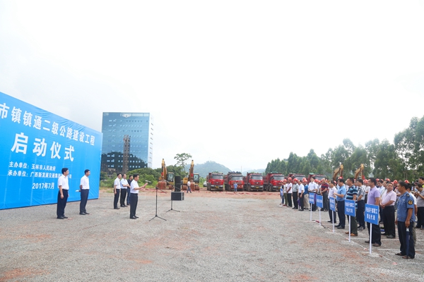 玉林市交通運輸局局長何東真主持儀式。玉林市市交運局、發(fā)改委、住建委、國土局、林業(yè)局等相關(guān)部門負責(zé)人,各縣(市、區(qū))政府分管交通工作有關(guān)部門負責(zé)人、興業(yè)縣干群代表以及新發(fā)展集團下屬企業(yè)代表參加了啟動儀式。(陳福喜 文/圖)