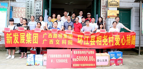 8月18日,廣西新發(fā)展交通集團(tuán)到環(huán)江縣明倫鎮(zhèn)相堯村開展愛心助學(xué)金和產(chǎn)業(yè)發(fā)展基金捐贈活動,向相堯村貧困學(xué)子捐贈文體用品、學(xué)習(xí)用具、愛心款,資助相堯村稻田養(yǎng)魚特色產(chǎn)業(yè)。