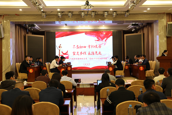 11月15日,新恒通公司賀巴高速(都安至巴馬段)建設(shè)指揮部黨支部組織開展“學(xué)習(xí)十九大,共筑中國夢”朗讀者比賽,弘揚(yáng)主旋律,傳遞正能量。八位朗讀者用聲音表達(dá)了愛黨愛國的政治情懷。