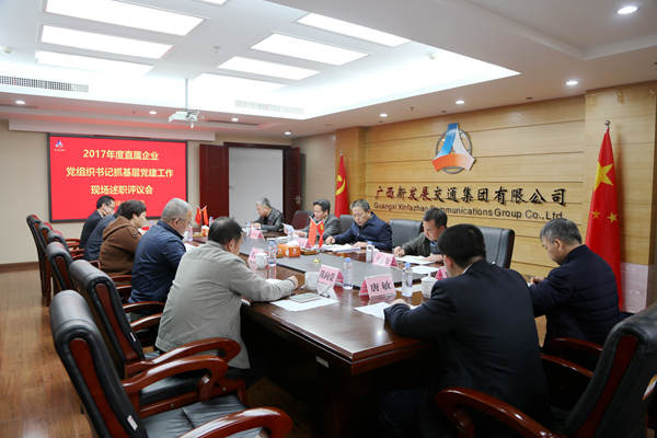 1月12日,集體公司召開2017年度直屬企業(yè)黨組織書記抓基層黨建工作現(xiàn)場述職評議會(huì)。集團(tuán)公司黨委書記朱堅(jiān)和,黨委副書記張友坐、翁科,紀(jì)委書記韋慶和以及自治區(qū)國有企業(yè)監(jiān)事會(huì)代表出席會(huì)議。