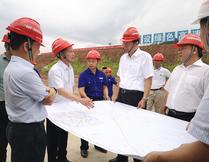 7月13日下午,自治區(qū)副主席費志榮到賀巴高速鐘昭段同古互通調(diào)研,賀州市市長林冠,自治區(qū)工業(yè)和信息化委巡視員彭健銘、自治區(qū)交通運輸廳副廳長王劼耘等同志隨行調(diào)研。集團公司黨委書記、董事長朱堅和,集團公司副總經(jīng)理李德智,新恒通公司領(lǐng)導(dǎo)藍日彥、馮學(xué)茂等陪同。