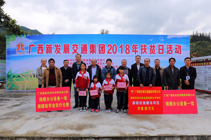 2018年10月17日是我國第5個扶貧日,按照自治區(qū)統(tǒng)一部署,新發(fā)展交通集團(tuán)以“扶貧助困 共同前行”為主題,深入環(huán)江縣、樂業(yè)縣、合山市5個扶貧聯(lián)系村開展走訪慰問、基礎(chǔ)設(shè)施建設(shè)及產(chǎn)業(yè)項目援助、金秋助學(xué)、志愿聯(lián)建等活動。