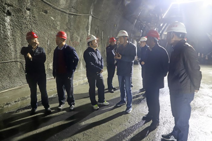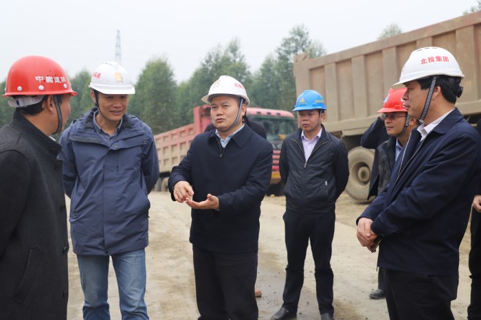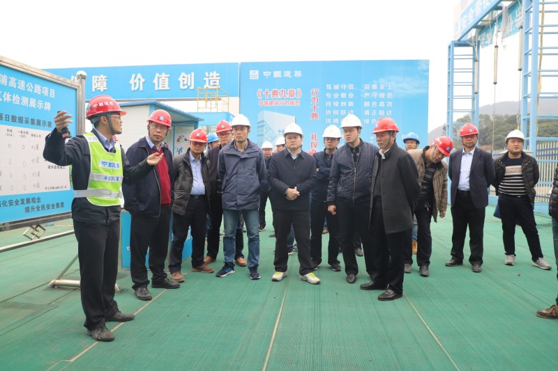 圖1:唐咸秋(左三)在大浦路重點控制性工程平陸運河特大橋施工現(xiàn)場指導工作