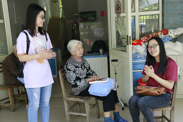 志愿者們圍坐在老人旁邊,詢問(wèn)他們的生活情況、身體情況,叮囑他們注意保暖、保重身體,傾聽他們的人生故事和叮嚀告誡,并為給他們唱紅歌、讀故事、講新聞,豐富他們的精神生活。老人們對(duì)志愿者的到來(lái)感到十分高興,和志愿者一起合唱《團(tuán)結(jié)就是力量》、《歌唱祖國(guó)》、《沒(méi)有共產(chǎn)黨就沒(méi)有新中國(guó)》等歌曲。護(hù)老院處處洋溢著歡樂(lè)的氣氛,老人們的臉上洋溢著幸福。